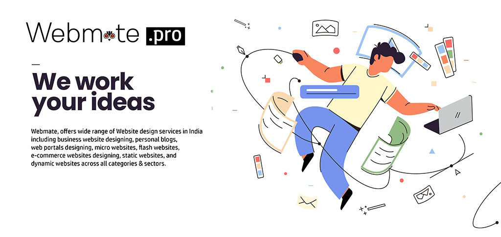 Webmate, offers wide range of Website design services in India including business website designing, personal blogs, web portals designing, micro websites, flash websites, e-commerce websites designing, static websites, and dynamic websites across all categories & sectors.
